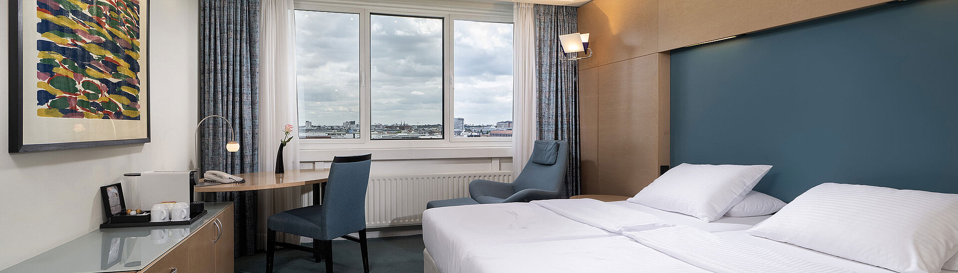 In addition to the fantastic view, here you can also enjoy the peace and relaxation you deserve after an exciting day in the vibrant metropolis. The beds are just wonderfully comfortable, the Wi-Fi for surfing is quickly set up and the morning coffee is conveniently self-prepared. To savour this pleasure for as long as possible, you can use your Superior room until 1 p.m. on the day of departure.